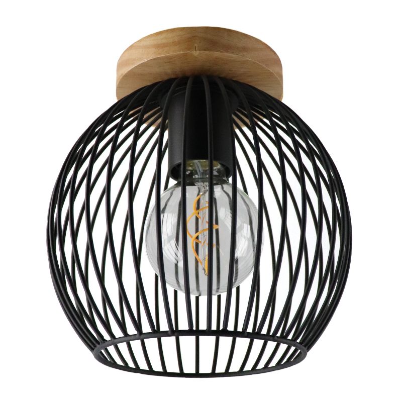 De industriële zwarte plafonnière Wiro is gemaakt van metaal en heeft een houten plafondkap. De industriële plafonnière wordt geleverd exclusief lichtbron. In deze lamp moet een lichtbron met E27 (grote) fitting. De lichtbron mag maximaal 40 watt aan vermogen hebben.