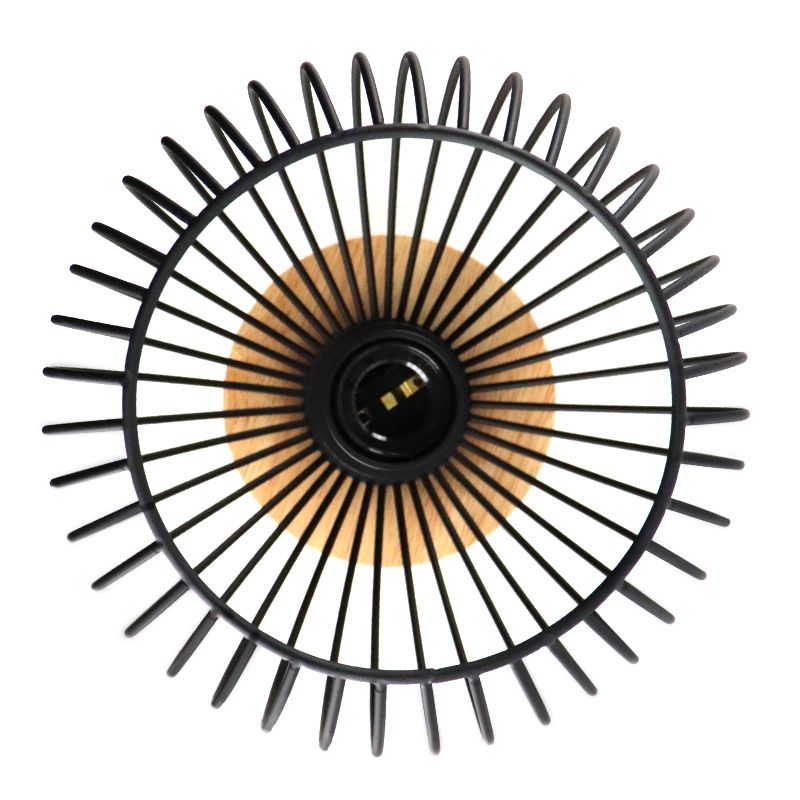 - Zwarte industriële plafonnière Wiro, met houten plafondkap