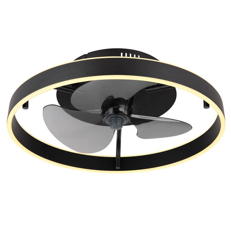 Zwarte moderne plafondventilator kunststof, Joos, 40W, warm tot koud wit verstelbare LED, met afstandsbediening