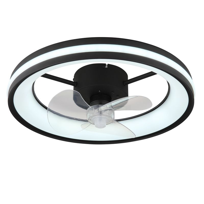 Zwarte moderne plafondventilator kunststof, Klaaske, 30W, warm tot koud wit verstelbare LED, met afstandsbediening