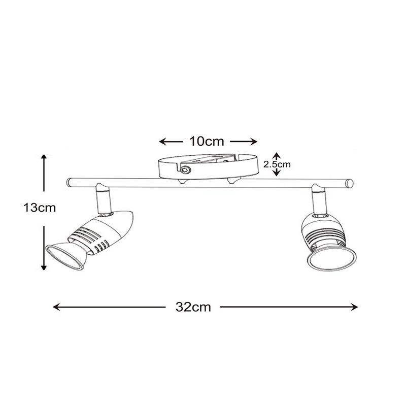 Product informatie Maximale wattage 5 Aansluitspanning 220-240V Aantal lampjes 2 Type fitting GU10 Product informatie Incl. lampje Nee Breedte in cm 9 Breedte voet-/montageplaat in cm 10 Diameter voet-/montageplaat 10 Hoogte in cm 13 Hoogte voet-/montageplaat 2.5 Lengte in cm 32 Lengte voet-/montageplaat 10 Dimbaar Ja (niet meegeleverd) Garantie 2 jaar IP waarde IP20 (stofdicht) Kleur Zwart Materiaal Metaal Stijl Modern Artikelnummer Q32714 - Home