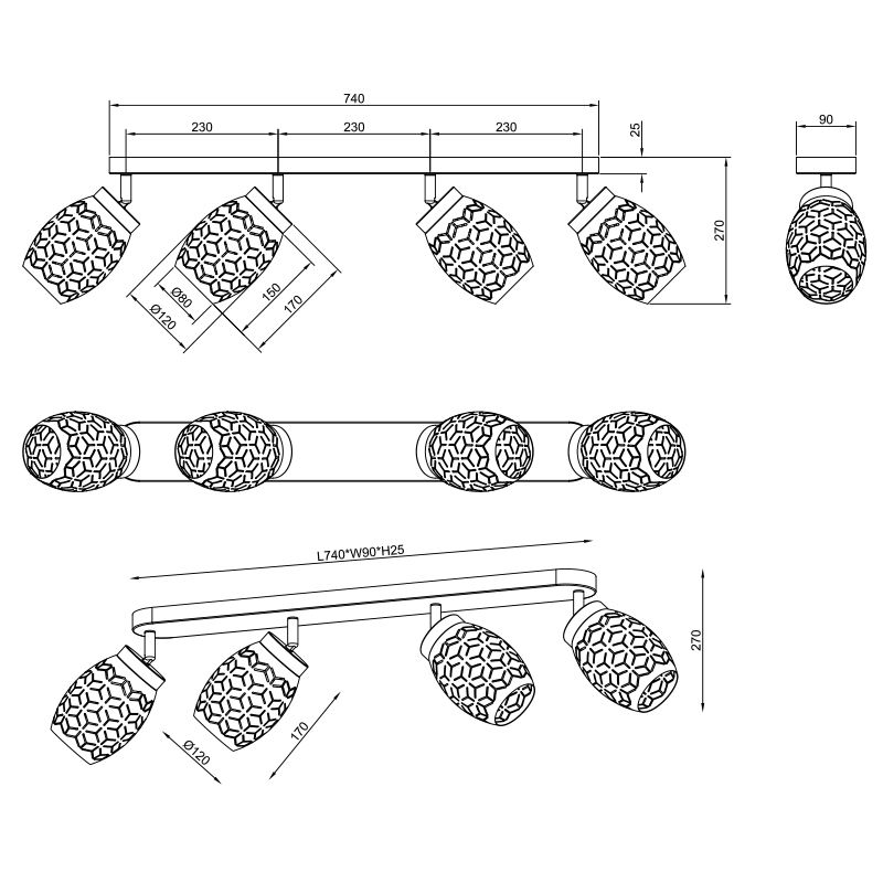 Product informatie Maximale wattage 10 Aansluitspanning 220-240V Aantal lampjes 4 Type fitting E14 Product informatie Incl. lampje Nee Breedte in cm 74 Hoogte in cm 27 Lengte in cm 12 Dimbaar Ja (niet meegeleverd) Garantie 2 jaar IP waarde IP20 (stofdicht) Kleur Goud, Zwart Materiaal Metaal Stijl Modern Artikelnummer Q10317 - Home