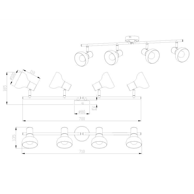 De zwarte plafondspot Toos heeft de stijl modern en is gemaakt van metaal. Deze moderne plafondspot heeft 4 E14 fittingen en wordt exclusief 4 bijpassende lichtbronnen geleverd. In de lamp kunnen lichtbronnen met een maximaal vermogen van 10 watt.