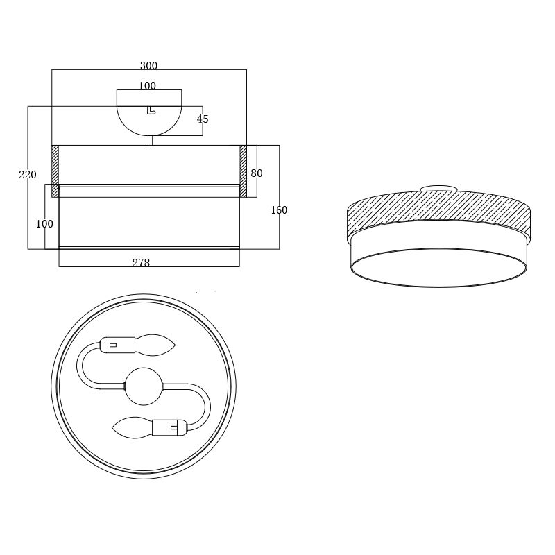 239,-3-6 werkdagen Taupe plafonnière modern, Denley- D: 30 cm, H: 22 cm