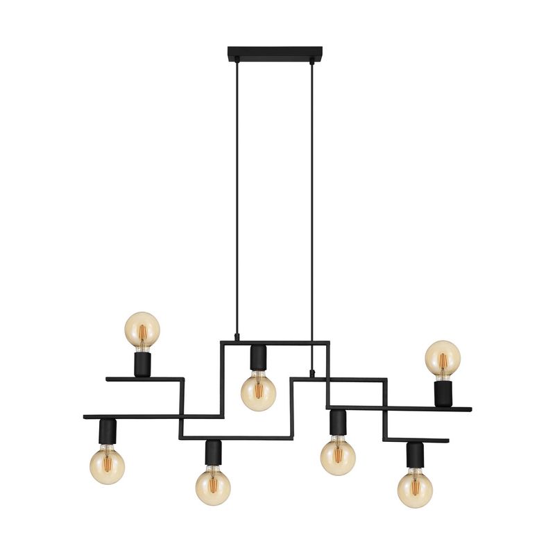 Product informatie Maximale wattage 40 Aansluitspanning 220-240V Aantal lampjes 7 Type fitting E27 Product informatie Incl. lampje Nee Breedte in cm 4 Gewicht in kg 2.76 Hoogte in cm 110 Lengte in cm 101 Dimbaar Ja (niet meegeleverd) Garantie 2 jaar IP waarde IP20 (stofdicht) Kleur Zwart Materiaal Staal Stijl Retro Artikelnummer Q30540 - Home