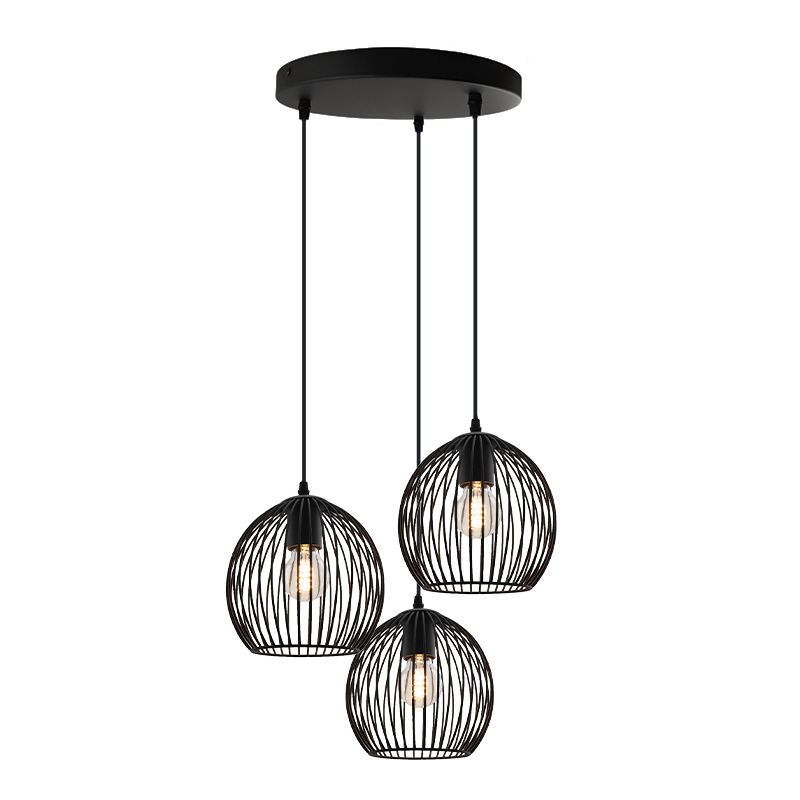 Zwarte Lieve hanglamp met 3 ronde, 30cm, kappen- B: 90 cm, H: 130 cm