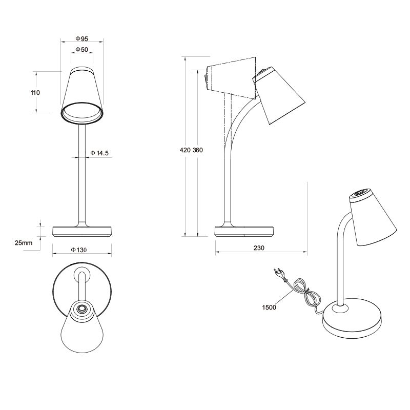 Deze moderne tafellamp heeft een aan-uitschakelaar op het product. Door middel van deze schakelaar zet je gemakkelijk de lamp aan of uit.