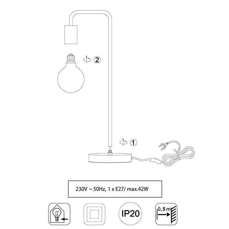 • 1 x E27 fitting (excl. lichtbron)