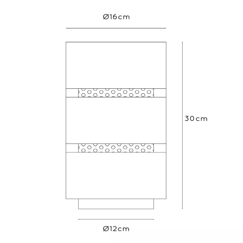 • 16 cm lang, 16 cm breed en 30 cm hoog
