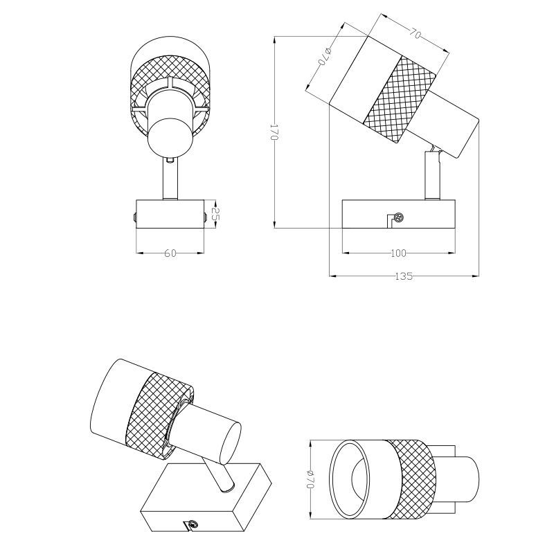 34,993-6 werkdagen Zwarte wandspot modern, Toos- B: 12 cm, H: 17,5 cm